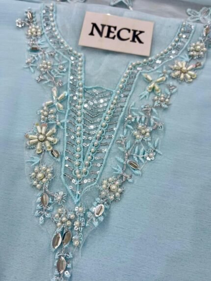 Azure Party Wear Chiffon Suit With Malai Trouser 2025